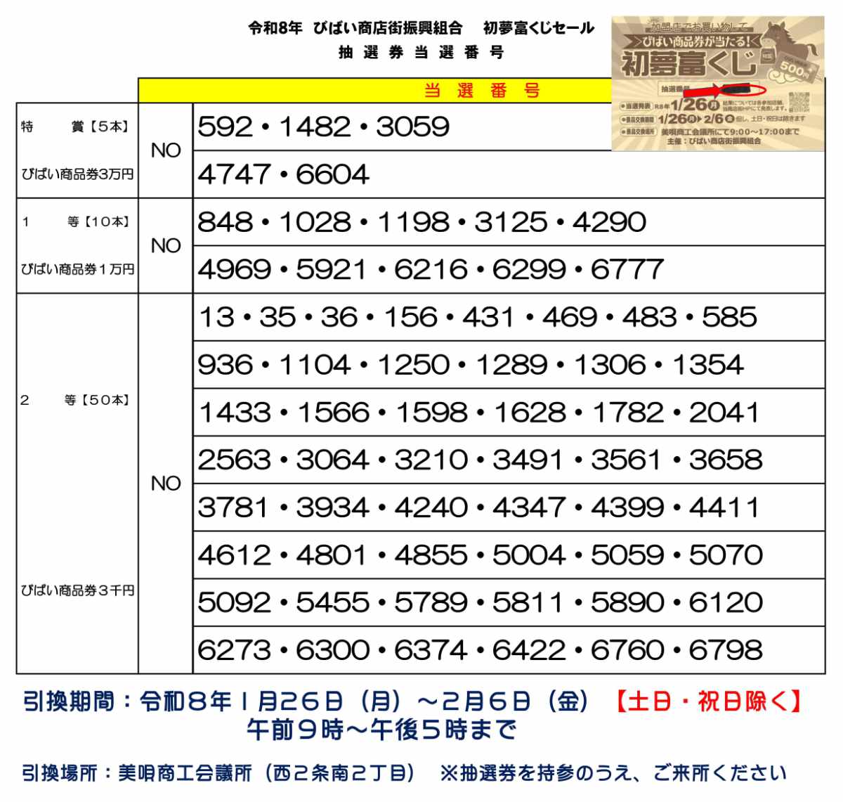 2026-初夢富くじセール当選番号発表について